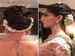 Both, Deepika and Ranveer are all decked up for their Bengaluru wedding reception. Styled by Sabyasachi Mukherjee, Deepika can be seen looking all things royal and chic in a gold Kanjeevaram saree gifted to her by her mother, Ujjala Padukone from Angadi Galleria. The actress has accessorised with bold ethnic jewellery including a choker, matching earrings and a ring featuring gold and green stones. A sleek bun adorned with gajra and a bold eye-makeup look are how she has completed her look. Ranveer, on the other hand, can be seen contrasting his lady love in an embroidered black Rohit Bal sherwani styled with black pants and matching embroidered shoes.